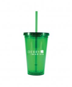 This is a BPA free 16 Oz. translucent acrylic double wall insulated cup with a matching PP straw. The O-ring keeps the straw in place. This tumbler includes a twist top lid. This item is non-microwavable and recommended hand wash only. Complies with Prop 65. 3.88" W x 6.13" H