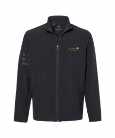 Made of 7.2 oz., 94/6 polyester/elastane plain weave. Has a durable water repellent finish. Features soft shell stretch fabric, half elastic cuffs, two front zip pockets. Complies with Prop 65.