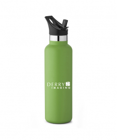 20 oz. Narrow-mouth vacuum-insulated bottle. Features a flip-top straw lid with ergonomic top finger loop. Keeps contents cold for 24 hours. Powder coat finish with copper lining, double wall 18/8 stainless steel, proprietary BPA-free insulated lid. Bottle comes with both screw-on lid and straw lid. 11" H x 2 7/8" Diameter.