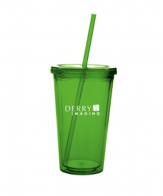This high-quality 18 oz. sweatproof tumbler with double-wall insulation is perfect for your cold beverages. The screw-on lid comes with a removable drinking straw.