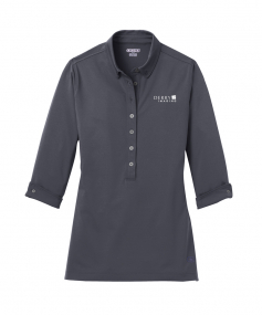 Break away from the ordinary in this button-down style polo that features cuffed 3/4 sleeves.