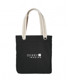 The Allie Tote is perfect for shopping, commuting or sightseeing. Contrast lining, striped handles and large metal grommets add a touch of whimsy to this casual tote. 11 Oz., cotton canvas. Interior zippered pocket. 13.25" W x 15.75" H x 3.5" D.