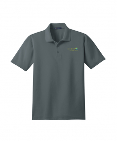 5.6-ounce, 60/40 cotton/poly. Includes double-needle stitching throughout. Flat knit collar and 3-button placket with dyed-to-match buttons. Features open hem sleeves and side vents.