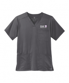 This top features 78/20/2 poly/rayon/spandex, v-neckline, shoulder badge loop, left chest pocket with pen slot, top-loading front pockets with interior, right pocket side vents, wonderwink heat transfer logo at left chest pocket and modern fit.