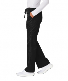 These are WonderWink Women's Petite WorkFlex Flare Leg Cargo Pant. Features 65/35 poly/cotton, mechanical stretch, full drawstring, half-back elastic waistband, front slash pockets, 28.5'' inseam and right side cargo pocket. These pants have a classic fit.